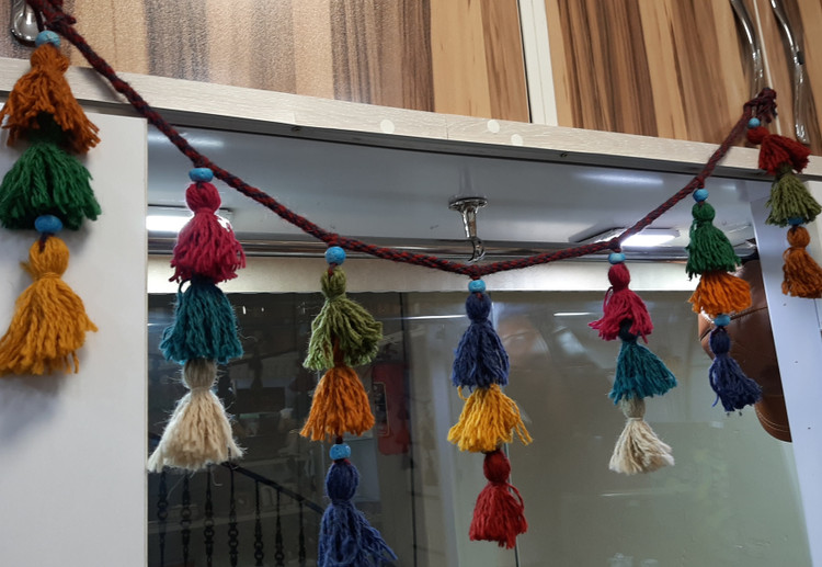 ریسه پشمی افقی عشایری / پرده سنتی افقی / آویز سنتی / سردری پشمی / ریسه سنتی / ریسه منگوله دار پشمی