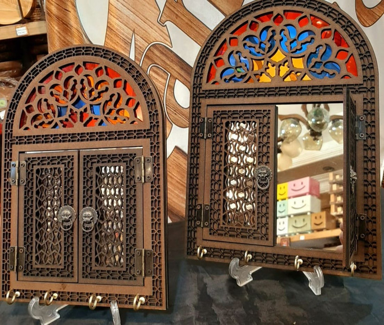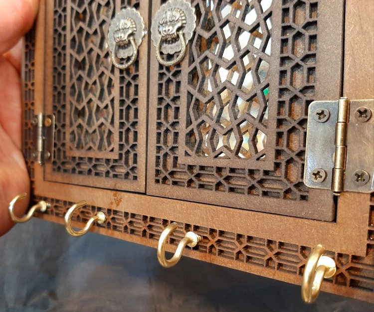 جاکلیدی آیینه هلال سنتی در دار / جا کلیدی سنتی / جاکلیدی چوبی / جاکلیدی دیواری / در سنتی جاکلیدی / در قدیمی جاکلیدی / در هنری جاکلیدی