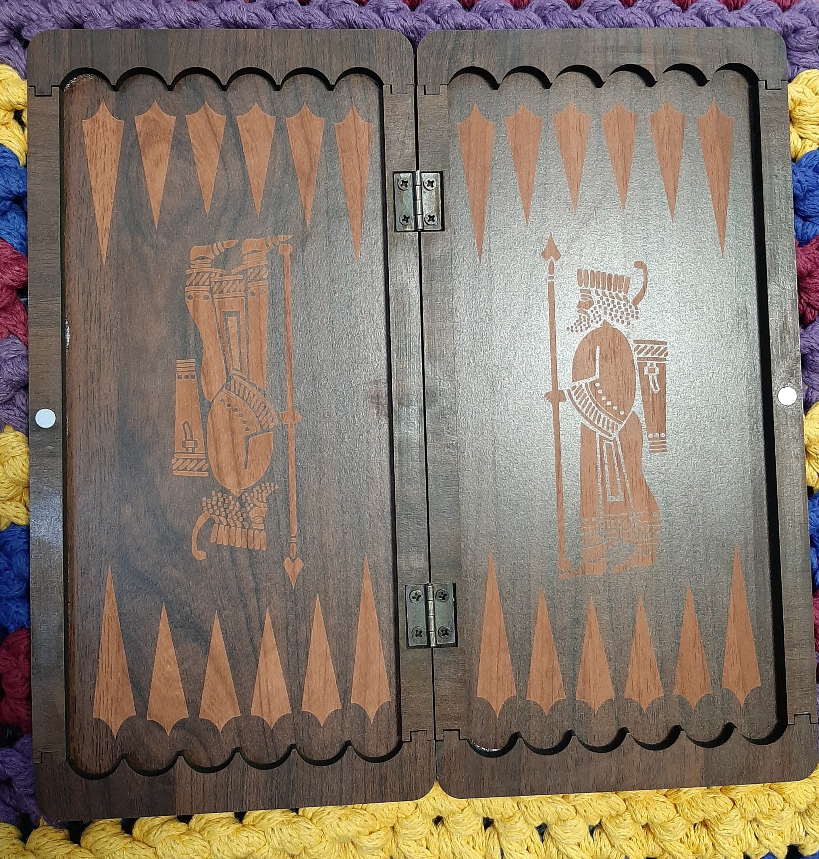 جنس ام دی اف دارای دو تاس دارای مهره تیره و روشن و رنگی دارای کیف دکمه دار دارای قفل آهنربایی دارای دو بازی تخته نرد و منچ اندازه ۲۵×۱۵×۲