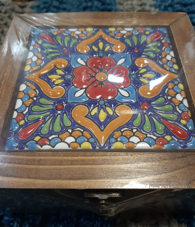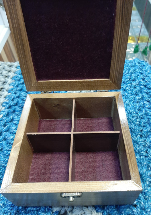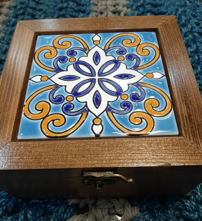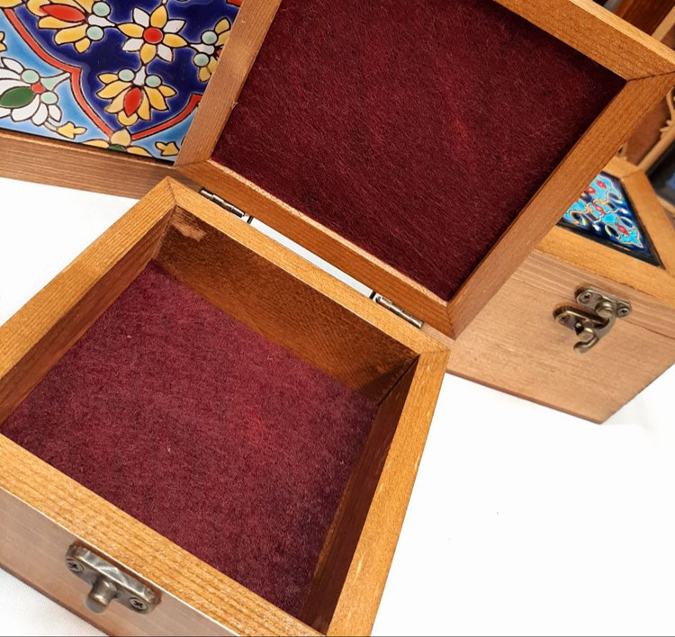 جعبه تی بگ سنتی چوب و کاشی ۱۵×۱۵ / جعبه سنتی تی بگ / جعبه پذیرایی سنتی ۴ قسمته / جعبه چوبی تی بگ / تی باکس ۴ خونه / شکلات خوری / جا شکلاتی / جا تی بگ / جعبه جواهرات / باکس جواهرات