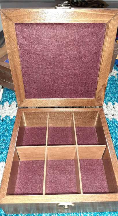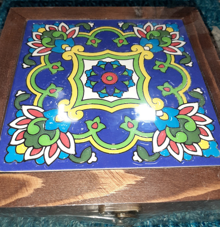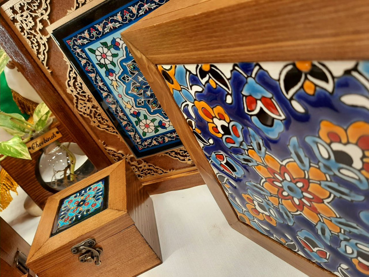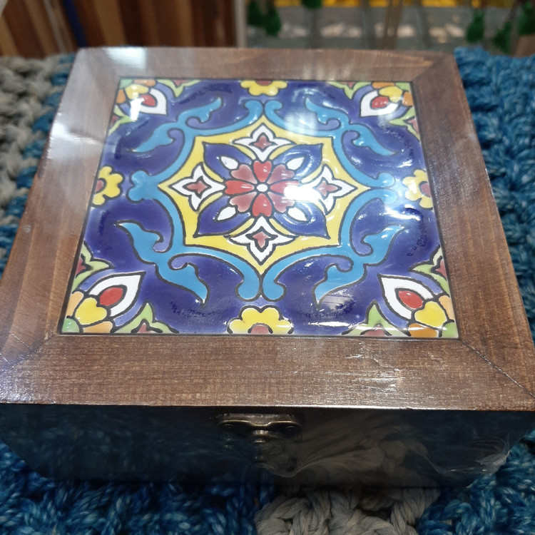 جعبه تی بگ سنتی چوب و کاشی پذیرایی ۲۰×۲۰ / جعبه سنتی تی بگ / جعبه پذیرایی ۶ قسمته / تی باکس ۶ خونه / جعبه چوبی تی بگ / شکلات خوری / جا شکلات / جا تی بگ / جهبه جواهرات / جعبه جواهرات / باکس جواهرات