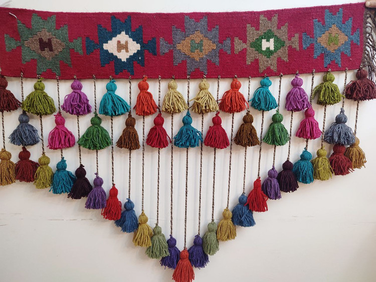 پرده سنتی کتیبه گلیمی پشمی عشایر کوتاه عرض ۱.۲۰ متر / پرده پشمی / سردری پشمی / سردری گلیمی / پرده عشایری / پرده گلیمی / آویز سنتی گلیمی / بالادری سنتی / کتیبه گلیم
