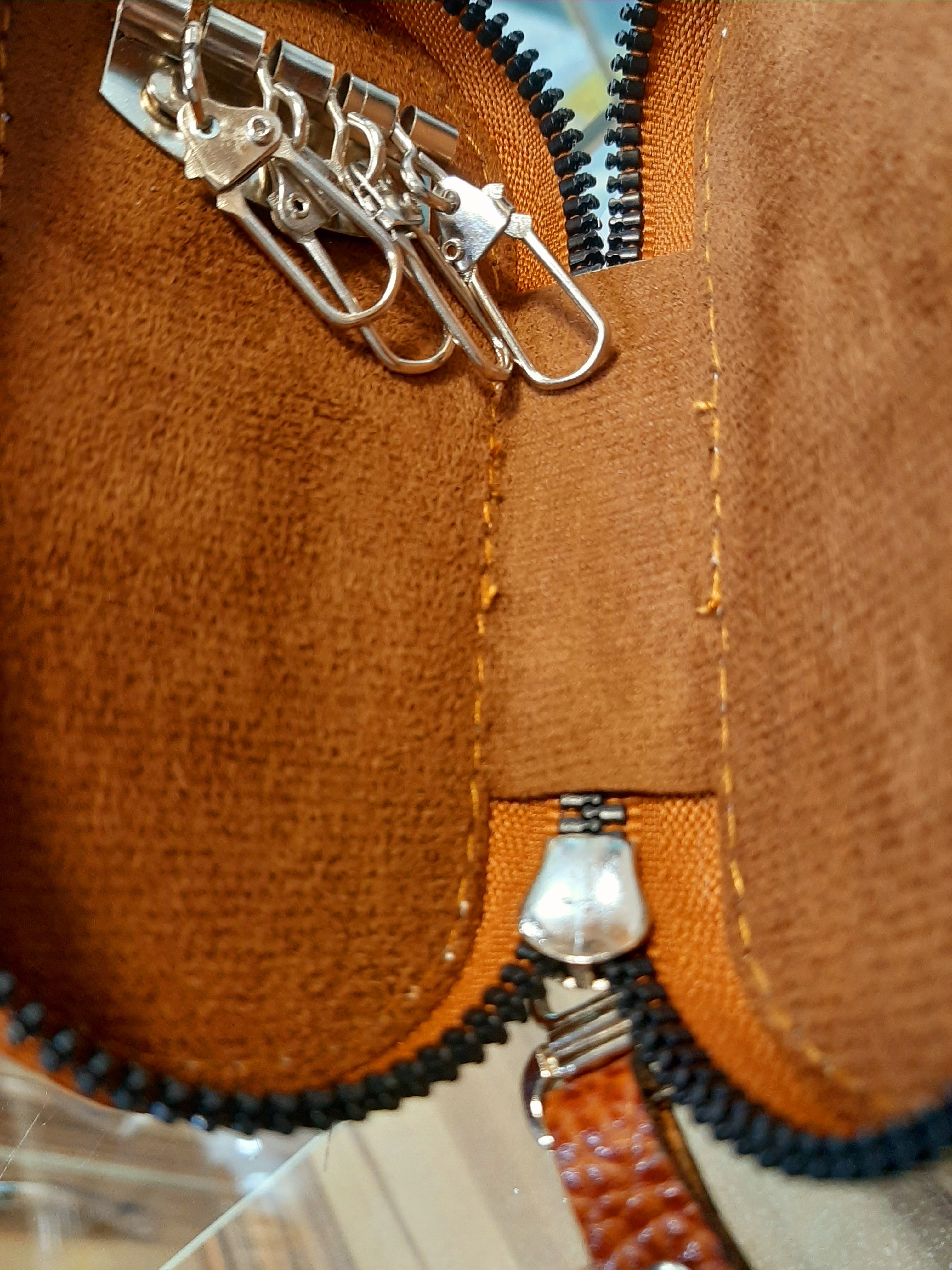 چرم طبیعی گاو یراق آلات آلمانی دور زیپ ۳ طرف اندازه ۴×۶×۱۱ دارای ۴ قلاب داخلی قفل فنری دارای جا کلیدی بیرونی حلقه فلزی رنگهای موجود مشکی و عسلی و قهوه ای طبق عکس