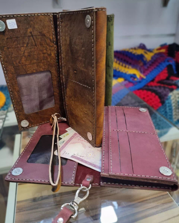 کیف پول کتی دولت زنانه چرم طبیعی شتر / کیف دولت چرم شتر / کیف مگنتی / کیف چرم شتر / کیف چرم طبیعی شتر / کیف دستدوز / کیف جاموبایلدار / کیف جا موبایل / کیف کتی قفل دار / کیف زنانه ۲ لت چرم شتر